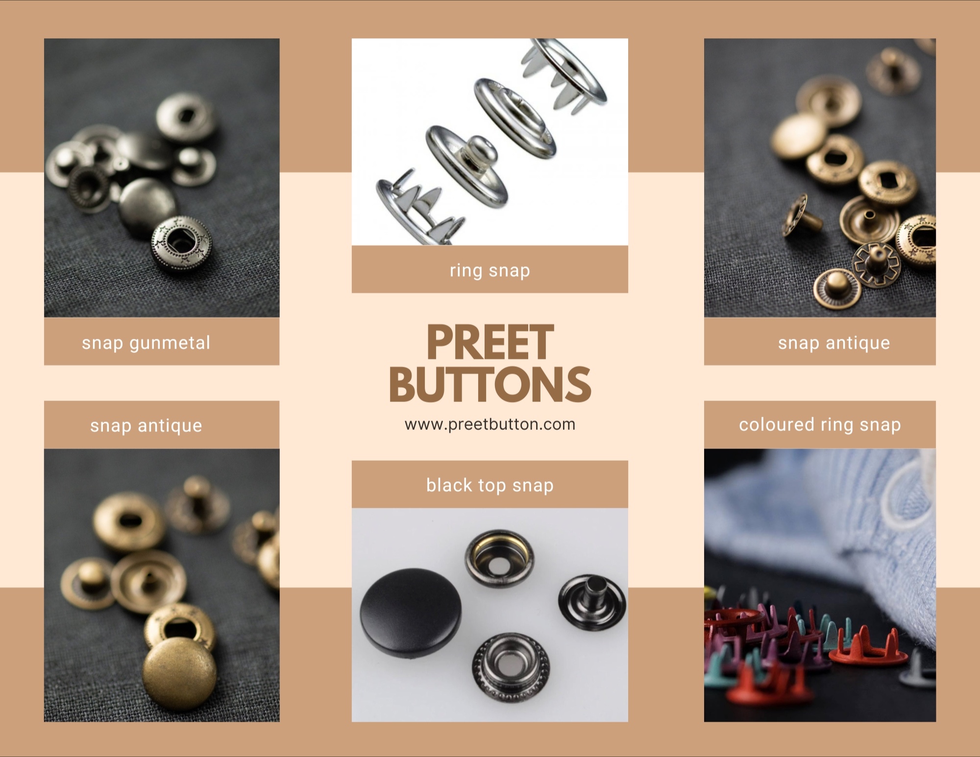 we at Preet Buttons, make snap buttons used in various items used in garment, bags, shoes, belt, etc.
